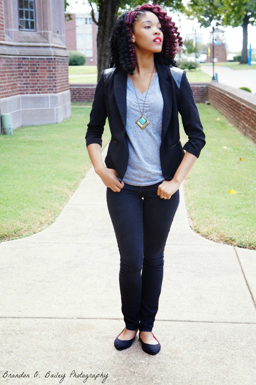 Nice natural look. Your blazer is very chic and I love your statement necklace. Hair is on point too!